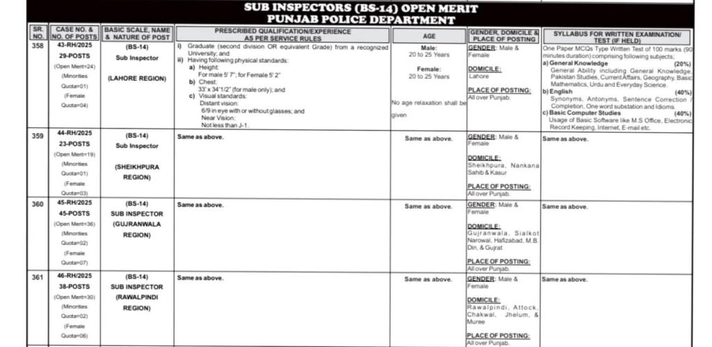 Enforcement Officer (BS-14) Punjab کے تمام نوجوانوں کے لیے شاندار موقع! Position Details شعبہ وار آسامیوں کی تفصیل Division Vacancies
