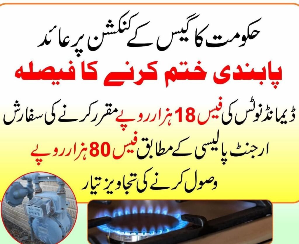 پاکستانی حکومت نے ملک بھر میں نئے گیس کنکشنز پر عائد پابندی ختم کرنے کا باقاعدہ فیصلہ کر لیا ہے۔ اب صارفین آسانی سے گھروں اور کاروبار کے لیے گیس کنکشن کے لیے درخواست دے سکیں گے۔
